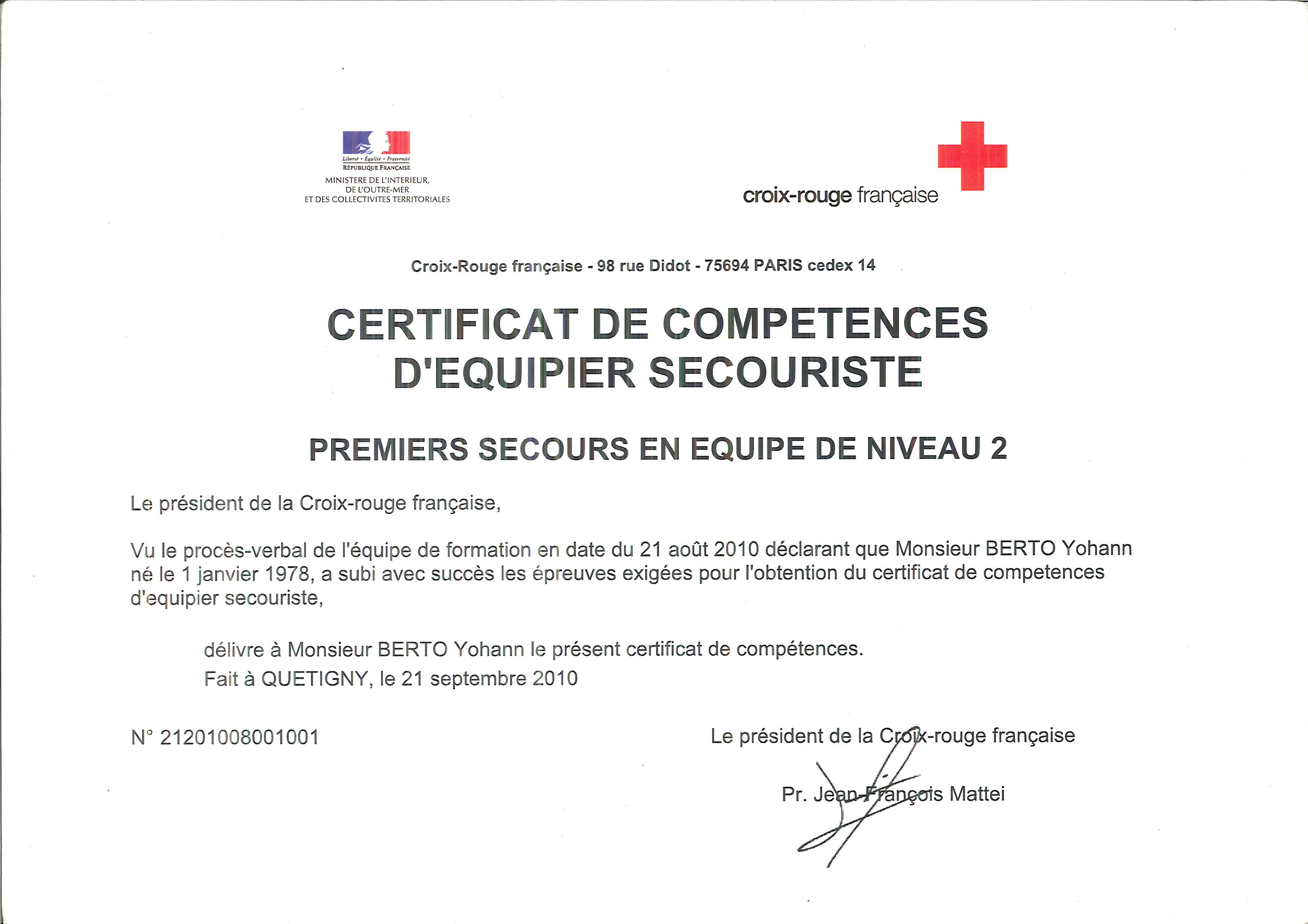 - Premiers Secours en Equipe de Niveau 2 (PSE2)